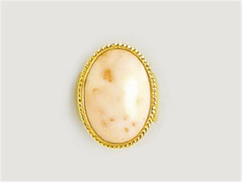 14 K gold, big oval cabochon cut coral decoration, modern, marked, diameter: 17.2 mm, weight: 10.4 g, in good condition.