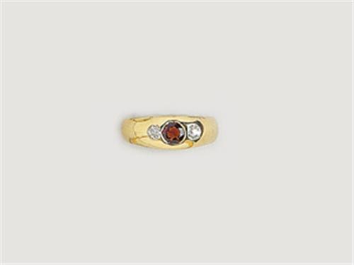 14 K gold, alliance type, 2 brilliants cca. 0.20 ct (R2CrSi-P1) and 1 almandine, circa 1900, marked, diameter: 18,7 mm, weight: 6.8 g, in good condition.