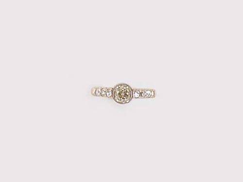 14 K white gold, 1 bigger brilliant circa 0.60 ct (R2CrP1) and 6 smaller brilliants circa 0.30 ct on the ring shoulder, circa 1930, marked, weight 2.0 g, diameter: 16.0 mm.