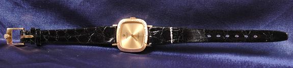Lady's Rolex 18K Yellow Gold Cellini Wristwatch. Having a manual movement, set within an 18k yellow gold oval shaped case, champagne dial with gold hands, completed by a black crocodile band with an 18k yellow gold Rolex buckle, accompanied by the original box and papers. Note: in mint condition and working order.