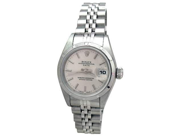Lady's Rolex Stainless Steel Oyster Perpetual Date Watch. Silver Dial. Stainless Steel Engine Turn Bezel. Stainless Steel Jubilee Band. Style 69190.