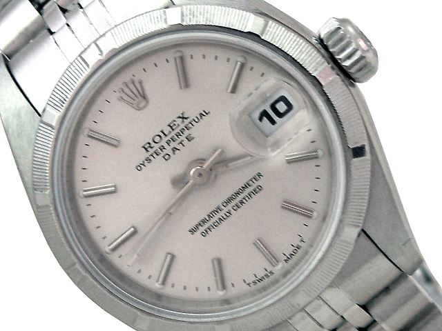 Lady's Rolex Stainless Steel Oyster Perpetual Date Watch. Silver Dial. Stainless Steel Engine Turn B