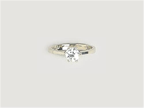 14 K white gold, 1 claw set brilliant 0.88 ct (R2TCrSi), marked, diameter: 18 mm, weight: 3.3 g, in excellent condition.