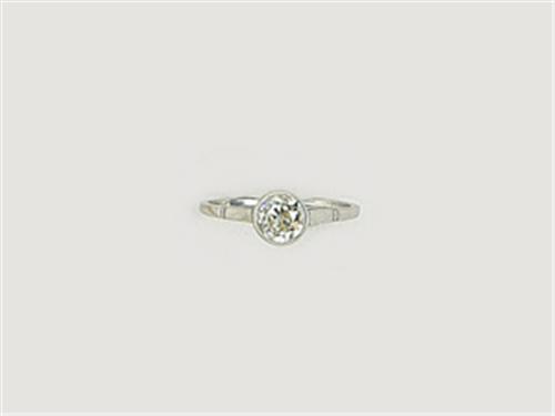 14 K white gold, 1 open work set brilliant cca. 0.90 ct (R1CrP1), engraved by hand on both sides, circa 1930, unmarked, diameter: 17 mm, weight: 1.9 g, in good condition.