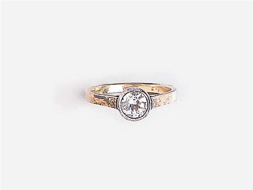 14 K gold and silver, 1 button set brilliant circa 0.90 ct (R2CrP1), circa 1900, weight: 3.5 g, diameter: 18.2 mm.