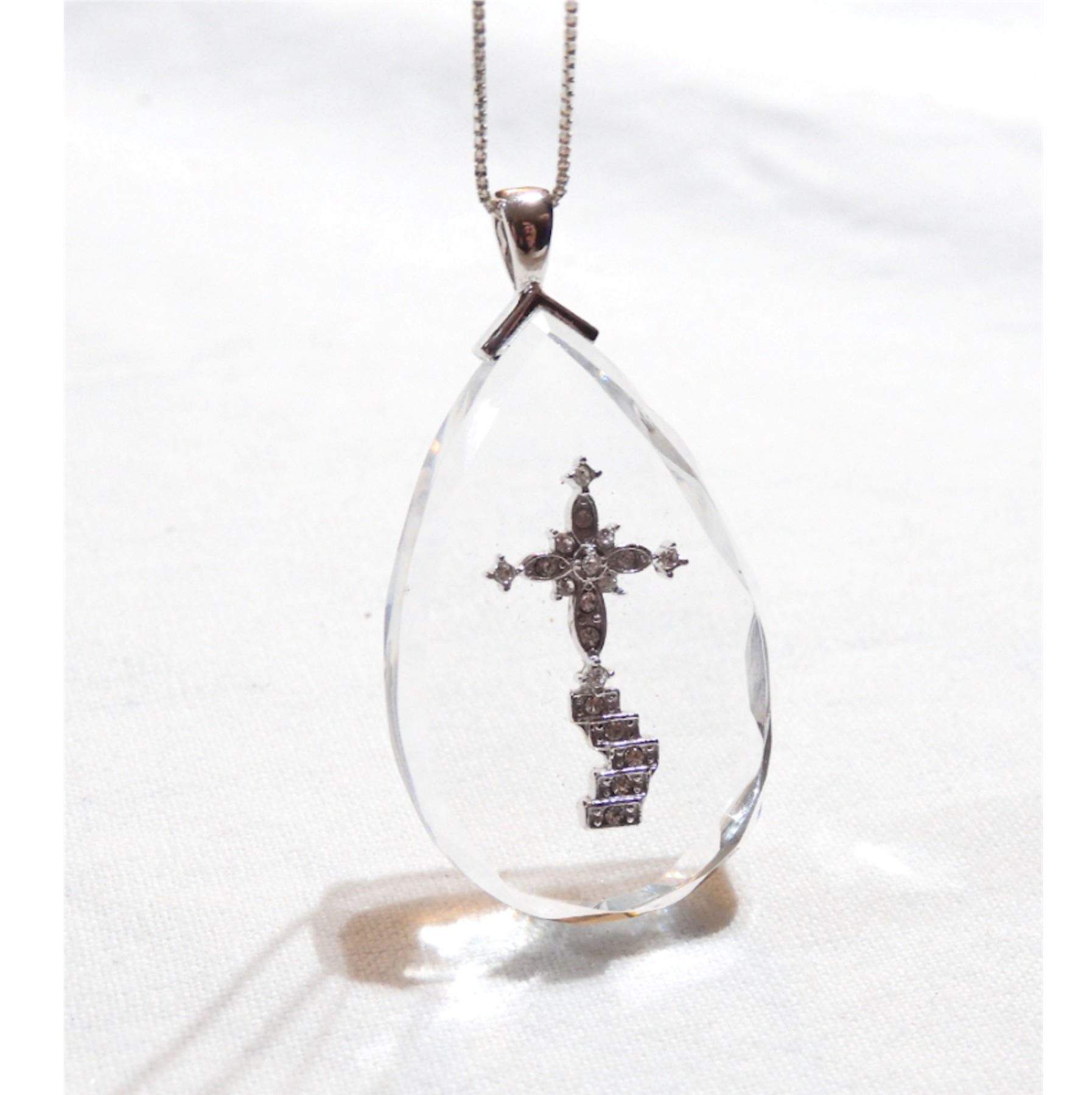 Lady's Sterling Silver Cross Pendant with Stone Accents on 18" Chain.
