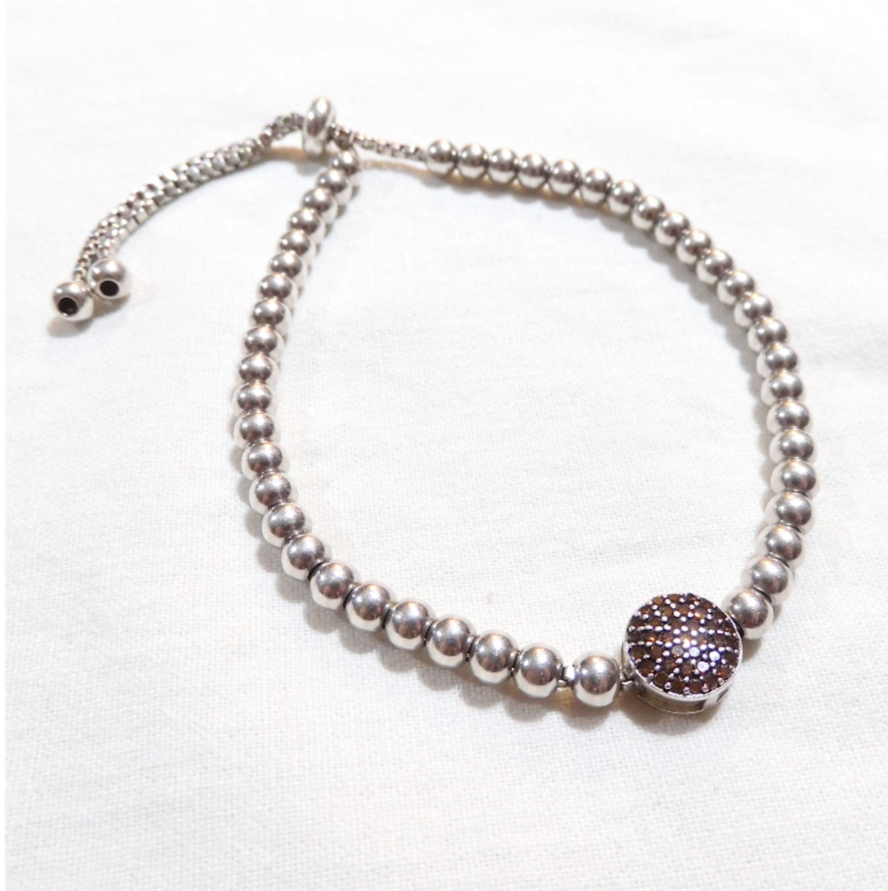 Lady's Sterling Silver Slide Bracelet with Red Coloured Diamond Accents.