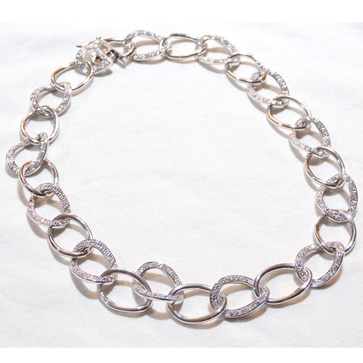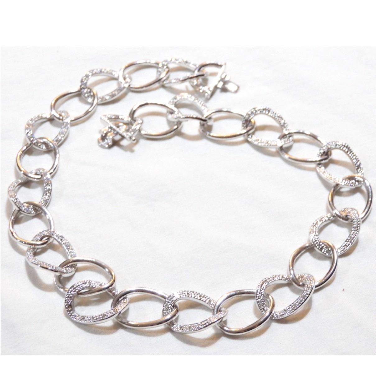 Lady's Sterling Silver Stone Accented Circular Link Necklace with slide clasp and Safety Catch. Total weight of 56.11 grams.
