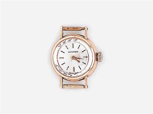 Gold-plated metal, metal face with baton numerals, lever watch with 17 jewels in working condition, case, face, movement are marked Longines, movement number: 50052124, gross weight: 6.7 g, worn.