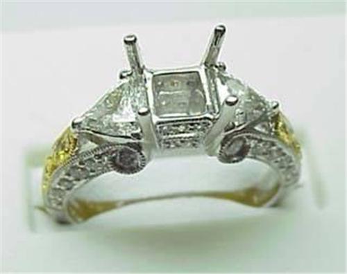 Lady's diamond semi-mount .77Ctw white and yellow diamonds 14kt white gold