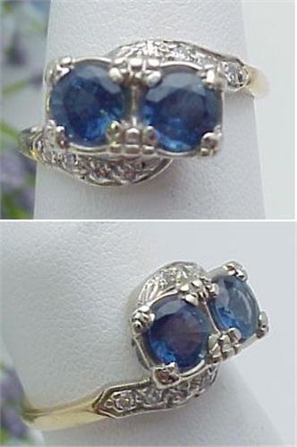 Lady's vintage sapphire ring 14kt two tone with two 5mm round sapphires 3.3gr size 5