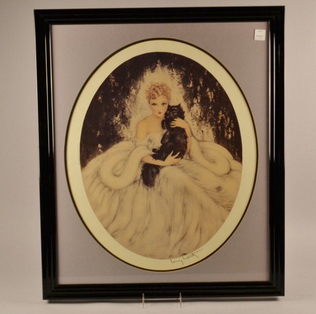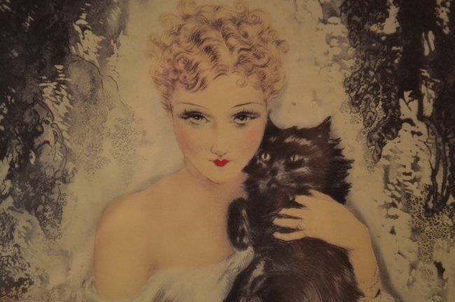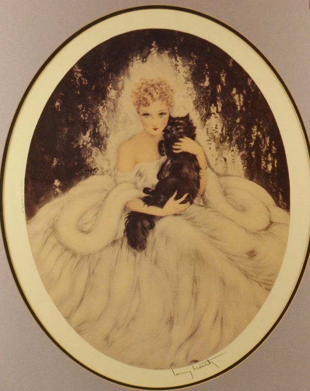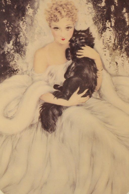 "Lady with Cat" Signed Louis Icart 28.5 " tall x 24"