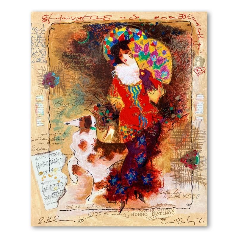 "Lady with Dog" is a limited edition serigraph on deckle edged paper by Alexander Galtchansky (1959-2008) and Tanya Wissotzky (1959-2006). It is numbered and hand signed and includes a letter of authenticity. Measures approximately 16.5" x 13" (image).