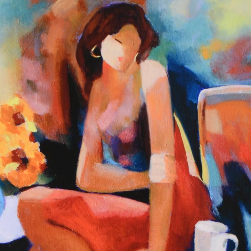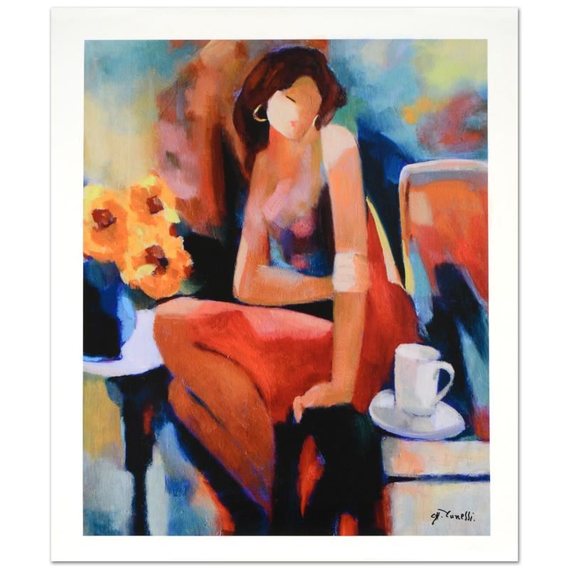 "Lady" is a limited edition giclee on canvas by Yunessi Gholam, numbered inverso and hand signed by the artist! Includes Certificate of Authenticity! Measures approx. 23.5" x 29.5" (image).