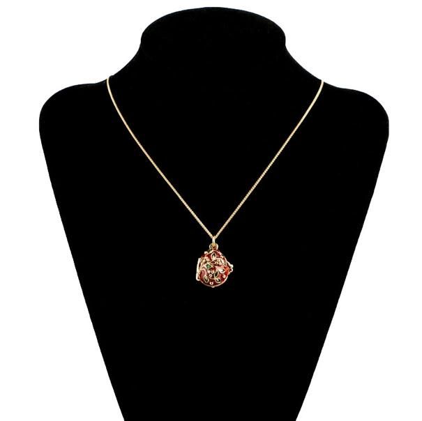 The oval central stone within a border of crystals is surmounted by a blue and white enameled beauty. The pendant contains the same symbol as the ornamentations but in a a golden texture with small crystals. This piece offers simple contrasts of color and texture. Features: 1"(H) x 0.5"(D) Pewter, Enamel, Chain is not included