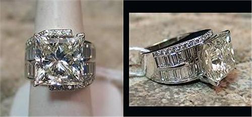 Lady's 18kt white gold and platinum ring with a 11.04Ct princess cut diamond center stone EGL cert Clarity SI 2, Color I and 3.72Ctw round and baguette diamonds size 6.5