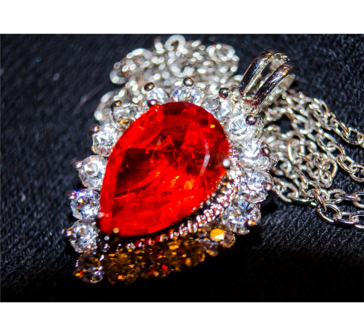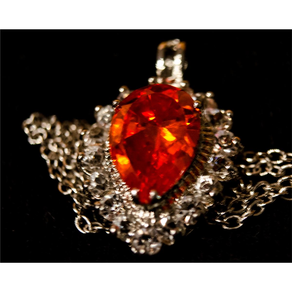 Lady's Gorgeous Sterling White Sapphire & Red Garnet Necklace, Garnet approx 5 ct, White Sapphire approx 2 ct. Estimated At:3,400.00 - 3,600.00 USD