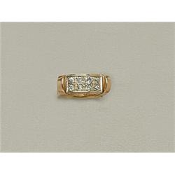 14 K gold, longish head, 8 care set brilliants circa 0.60 ct (R2CrSi), circa 1940, marked, diameter: 17 mm, weight: 5.6 g, in good condition.