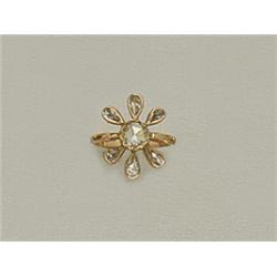 14 K gold, 1 bigger and 6 drop shape rose cut diamonds circa1.20 ct stylised floral motif, later mark, diameter: 19 mm, weight: 5.6 g, in good condition.