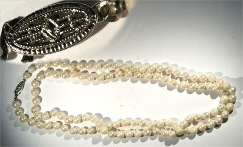 Extremely nice evenly matched lady's single strand 30" Pearl Necklace. Strung with 107 creamy white cultured pearls ranging in diameter from 6.3mm-6.5mm. Nice medium lustre and attached with a filigree style 14kt