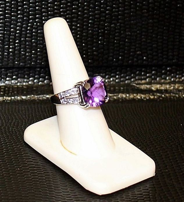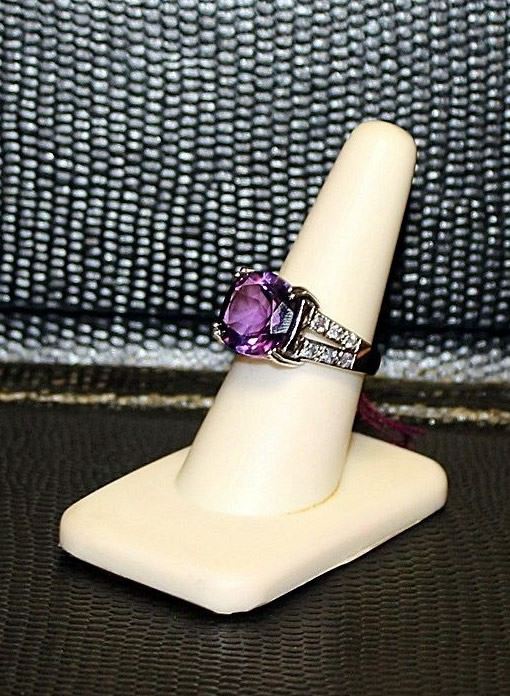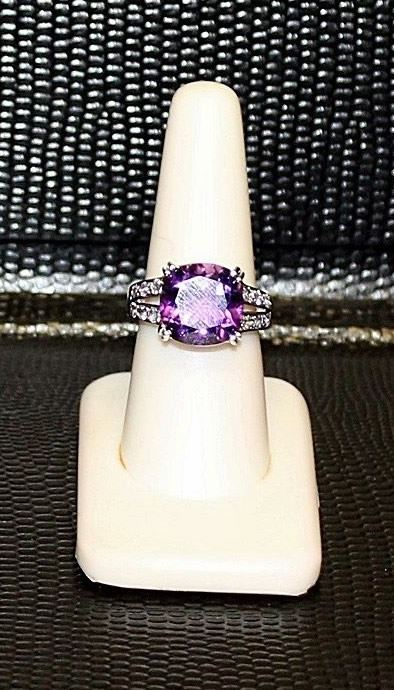Lady's Very Fancy 18 kt White Gold over Sterling Silver Amethyst & Diamond Ring. Amethyst approx 8 cts, Diamonds approx .25 ct VS1 color G. Estimated At:2,400.00 - 2,600.00 USD