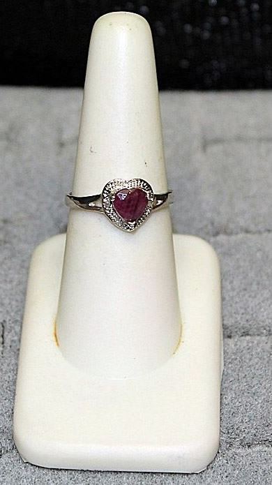 Lady's Very Fancy 18 kt White Gold over Sterling Silver "Heart Shape" Pigeon Blood Ruby & Diamond Ring. Ruby approx 1.5 cts, Diamonds approx .20 ct VS1 color G. Estimated At:2,600.00 - 2,800.00 USD