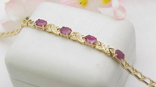Lady's bracelet ruby four 7x3mm with small diamonds 14kt yellow gold 7.3gr