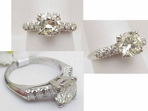 Lady's diamond ring center stone 1.71Ct Clarity VS 2 Color N platinum 4.9gr size 6.75