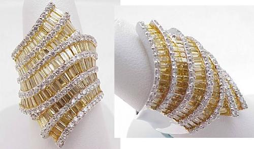 Lady's diamond ring with yellow and white diamonds 5Ctw 18kt white gold 12.96gr size 7