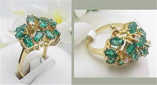 Lady's emerald cluster ring 2.50Ctw with .17Ctw diamonds 14kt yellow gold size 6.25