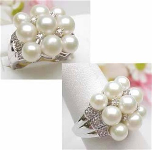 Lady's pearl and diamond ring approx .10Ctw 10kt white gold 6.0gr size 7