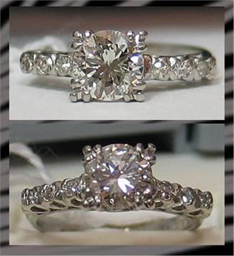 Lady's platinum diamond ring with approx 1Ct round diamond center stone Clarity SI 2, Color I and six single cut rounds diamonds approx .18Ctw size size 5 4.0gr