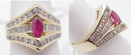 Lady's ring marquise ruby center stone .40Ct with diamonds 1.25ctw 14kt yellow gold size 6.75