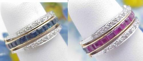 Lady's ring - reversible diamond and sapphire or diamond and ruby 14kt yellow gold 4.0gr size 5.5
