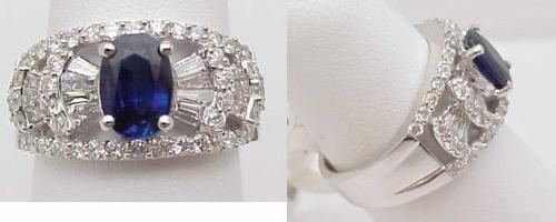 Lady's ring sapphire center stone 1.51Ct with diamonds 1.12Ctw 14kt white gold size 7