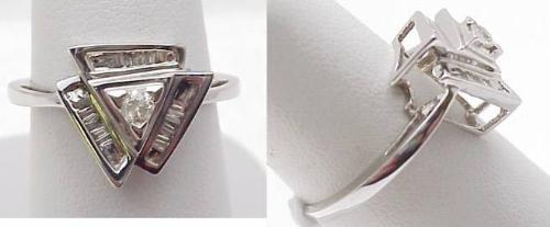 Lady's ring triangle shaped with diamonds .28Ctw 14kt white gold size 7
