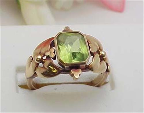 Lady's ring with 8x6mm rectangle peridot 14kt yellow gold 3.9gr size 6