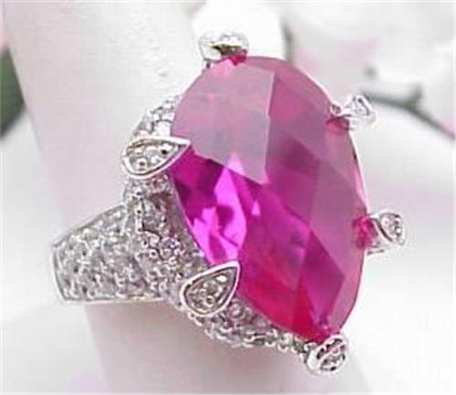 Lady's ring with a pink center stone and cubic zirconia stone sterling size 8