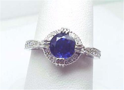 Lady's sapphire ring .97Ct with .37Ctw diamonds 14kr white gold size 6.75