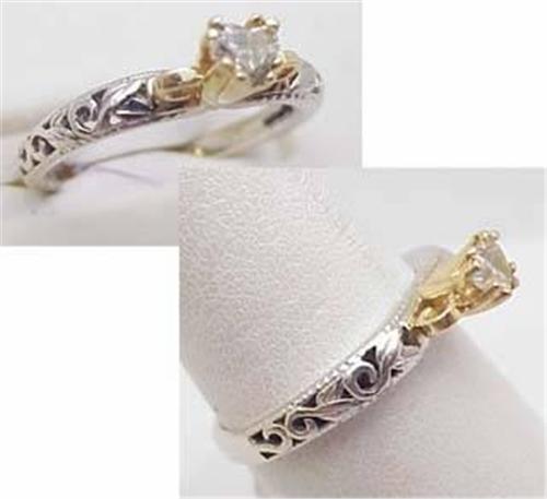 Lady's two-tone ring heart shaped diamond approx .26Ct 3.3gr size 6.75