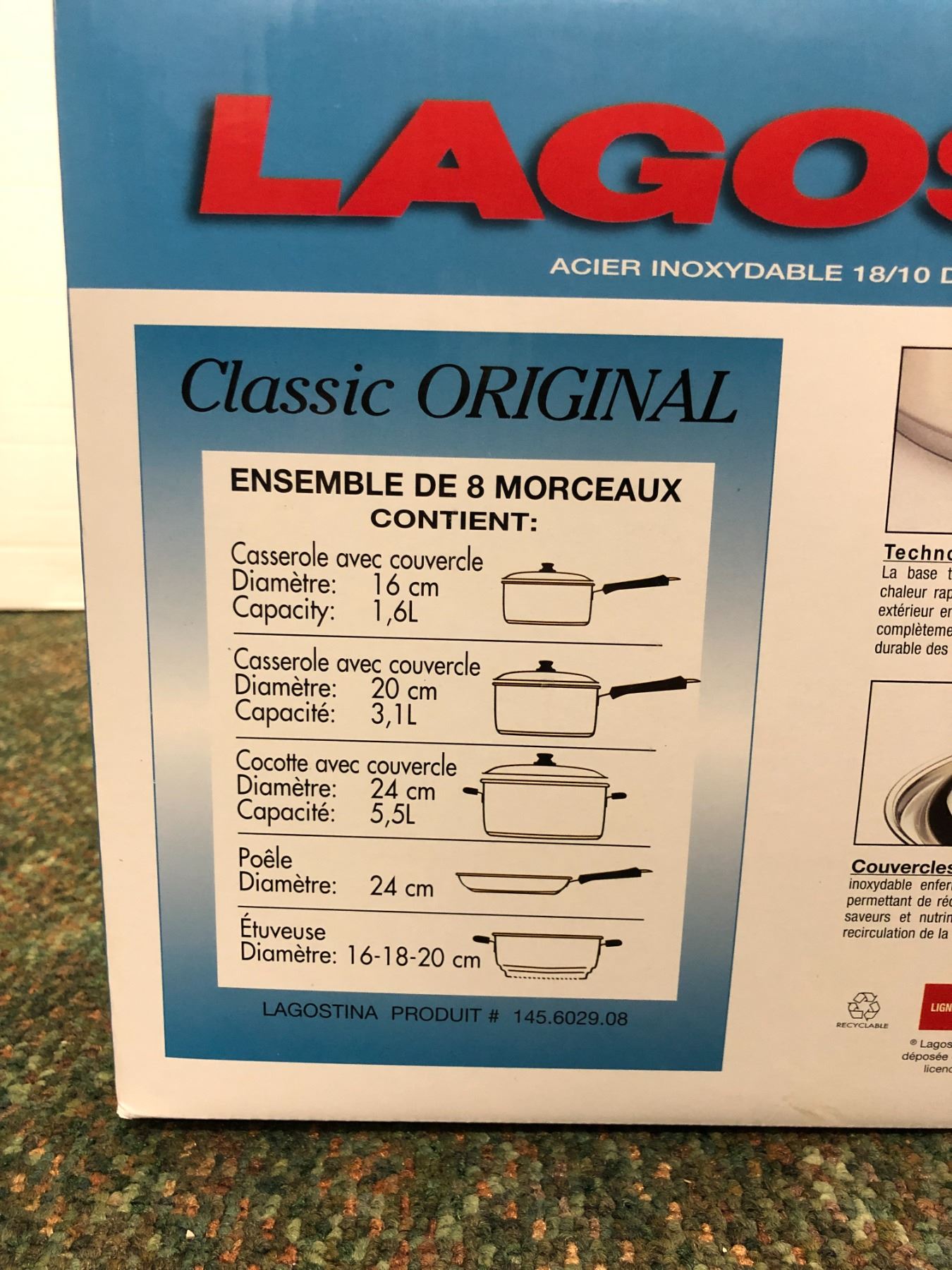 Lagostina - Classic Original Cookware Set - 8 pieces - New in Box with Lifetime Warranty