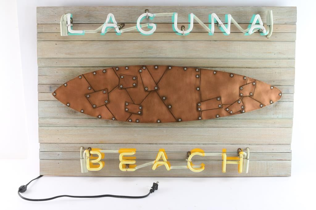 Traditional glass neon on wood panels. Measures 36" X 24" X 5". In very good condition.
