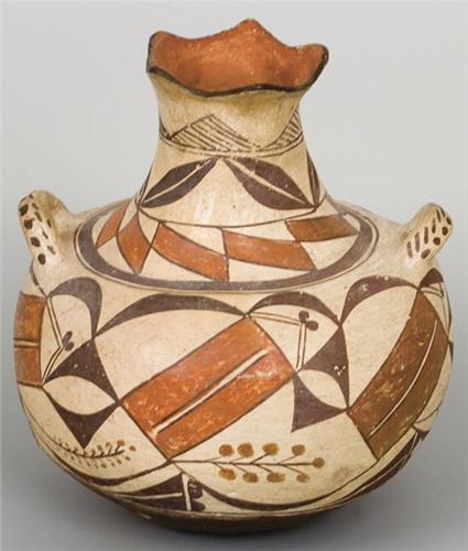 Laguna Vase with Side Handles. 9 ½” x 8". Minor scratches and nicks but fine condition. Tilted rectangle designs and scalloped top. c.1890 -1910. (est $2,000-3,000)