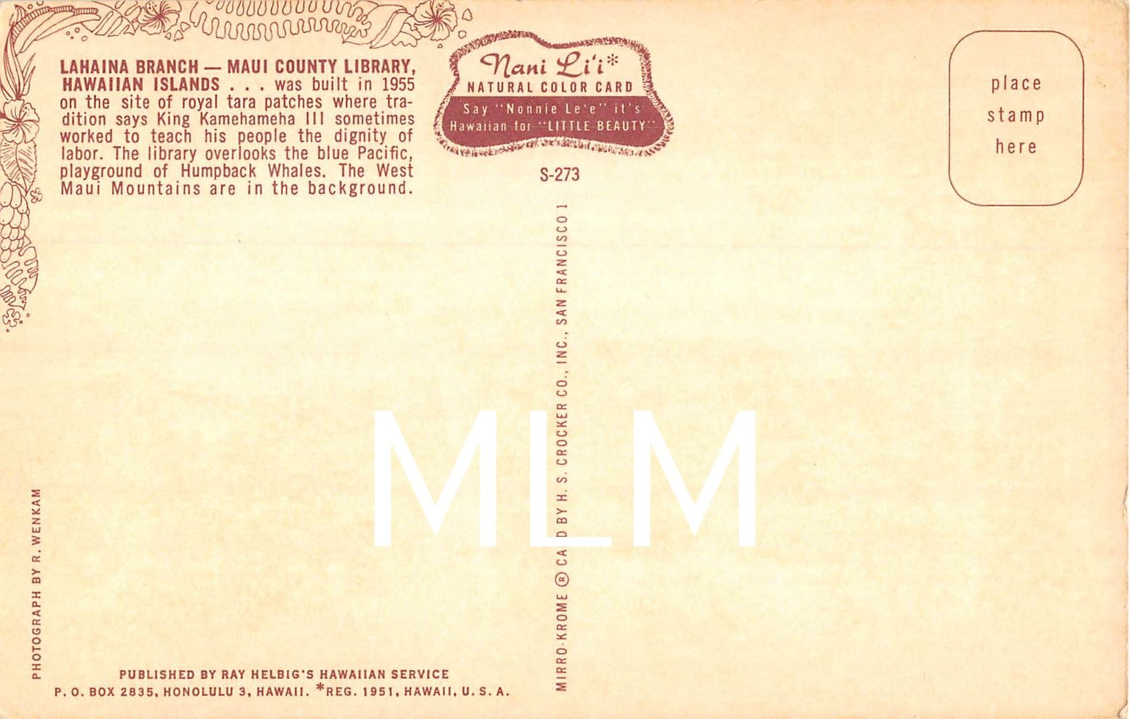 Lahaina Branch - Maui County Library, Hawaiian Island Postcard