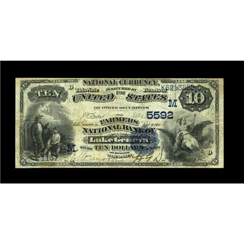 <B>Lake Geneva, WI</B></I> - $10 1882 Date Back Fr. 545 <B>The Farmers NB</B></I> Ch. # (M)5592<BR>A very scarce note from a much in demand location. This is the only Date Back known from here, and one of only three early notes of any kind reported from this institution. Pen signed <B>Fine-Very Fine.</B></I>