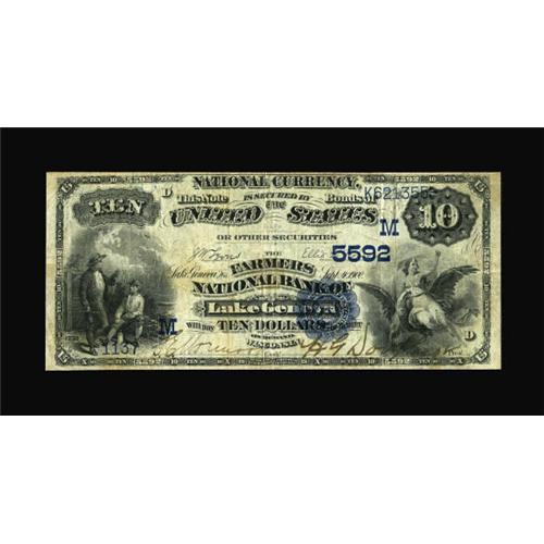<B>Lake Geneva, WI</B></I> - $10 1882 Date Back Fr. 545 <B>The Farmers NB</B></I> Ch. # (M)5592<BR> Fewer than ten large notes of all types and denominations are known from this scarce Lake Geneva bank, with this the only Date Back reported. It's the earliest note reported from this well collected institution, one of only two to issue in this well known vacation community. Pen signed <B>Fine.</B></I><BR><BR><b>Shipping:</b> Coins & Currency (<a target="_blank" href="http://www.heritageauctions.com/common/shipping.php">view shipping information</a>)
