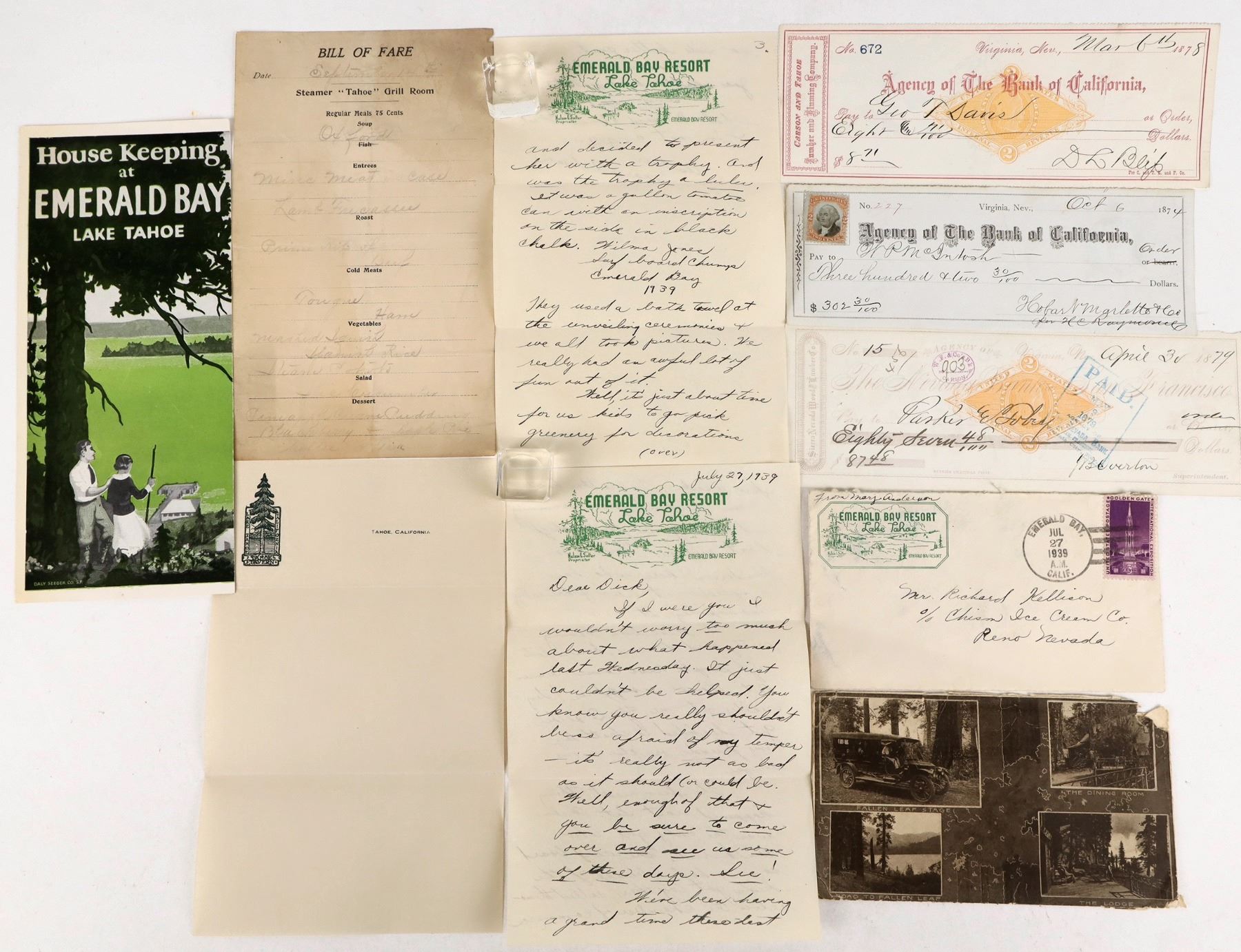 Lake Tahoe, California Ephemera Collection (Comstock Lumber Checks, Brochures, Postal Covers) [20732