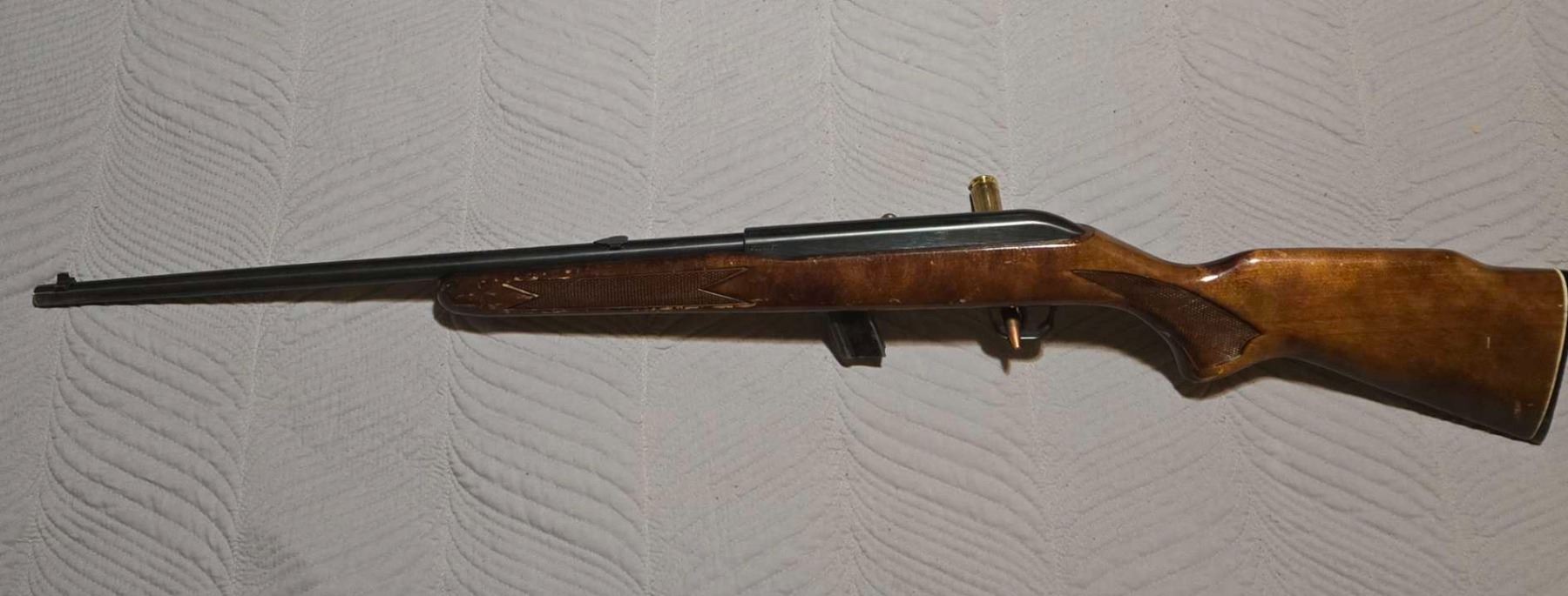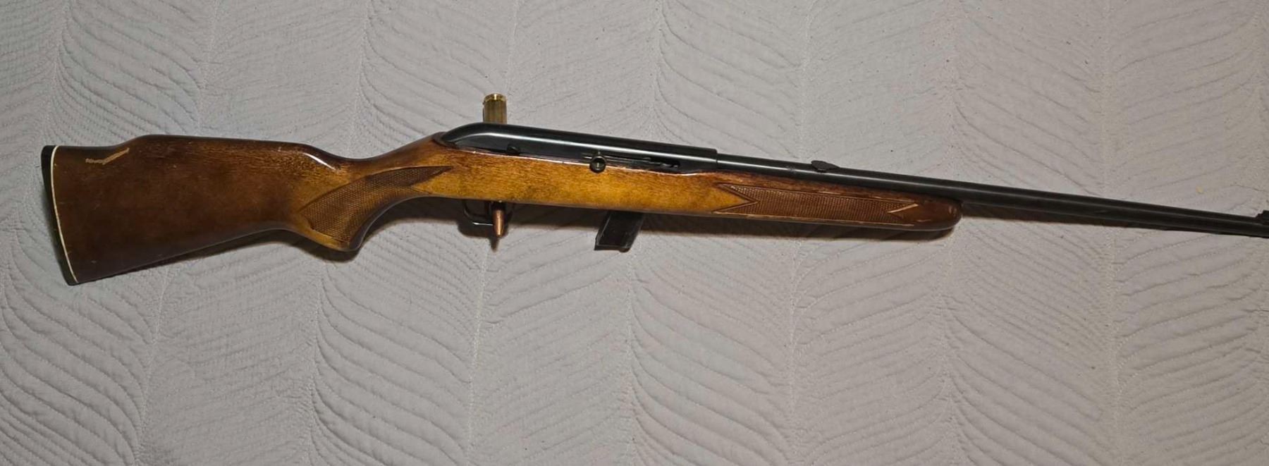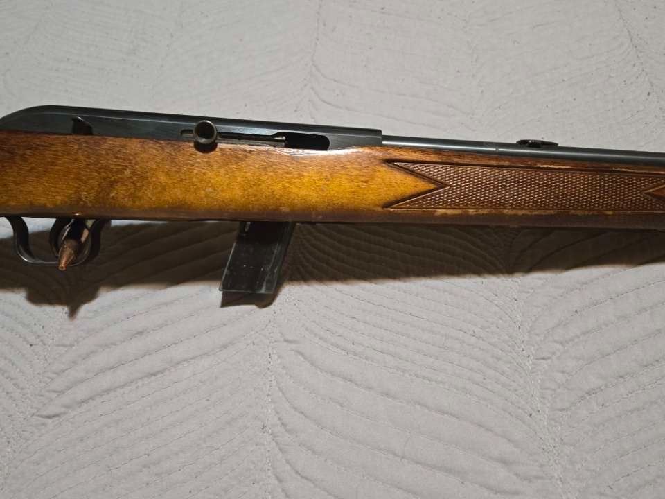 non restricted semi auto .22LR, retains 95% of its factory blue, action is smooth. stock is in very good condition. magazine is included with it.