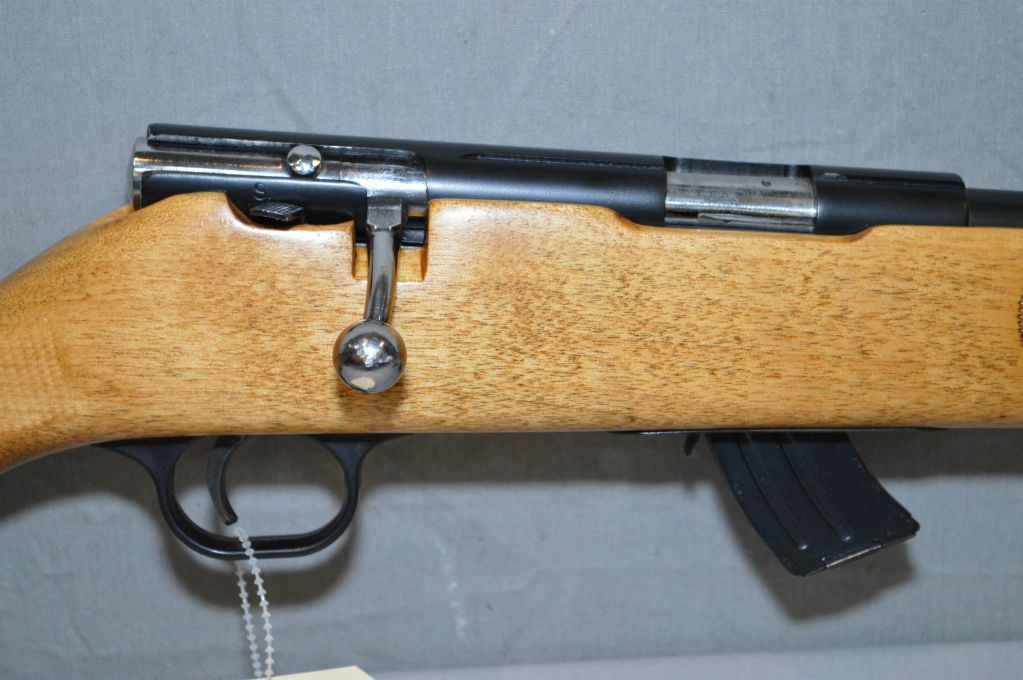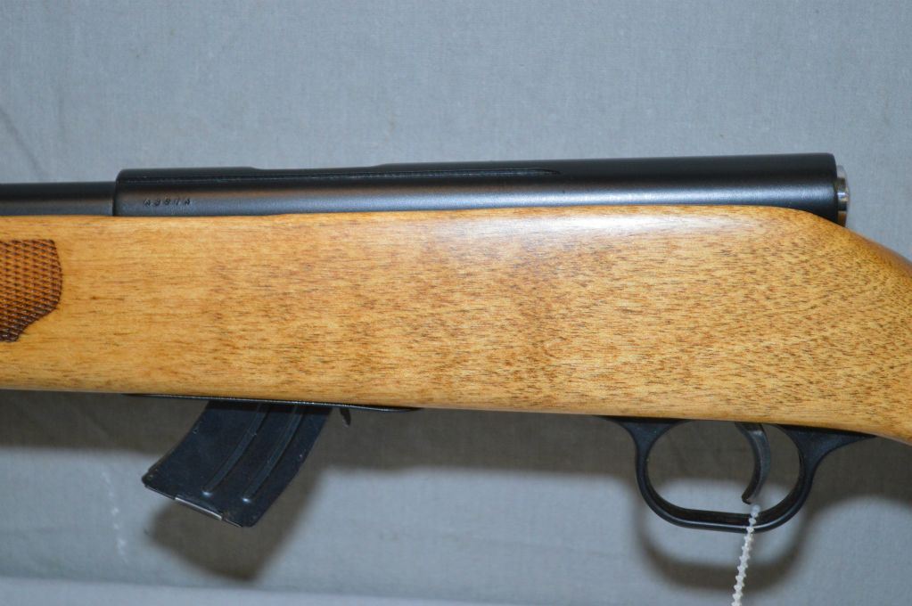 Lakefield Model Mark II .22 LR cal Mag Fed Bolt Action Rifle w/ 21" bbl [ blued finish, barrel sights, blonde pistol grip stock w/ pressed checkered forend, black plastic butt plate ] Ser # 43974