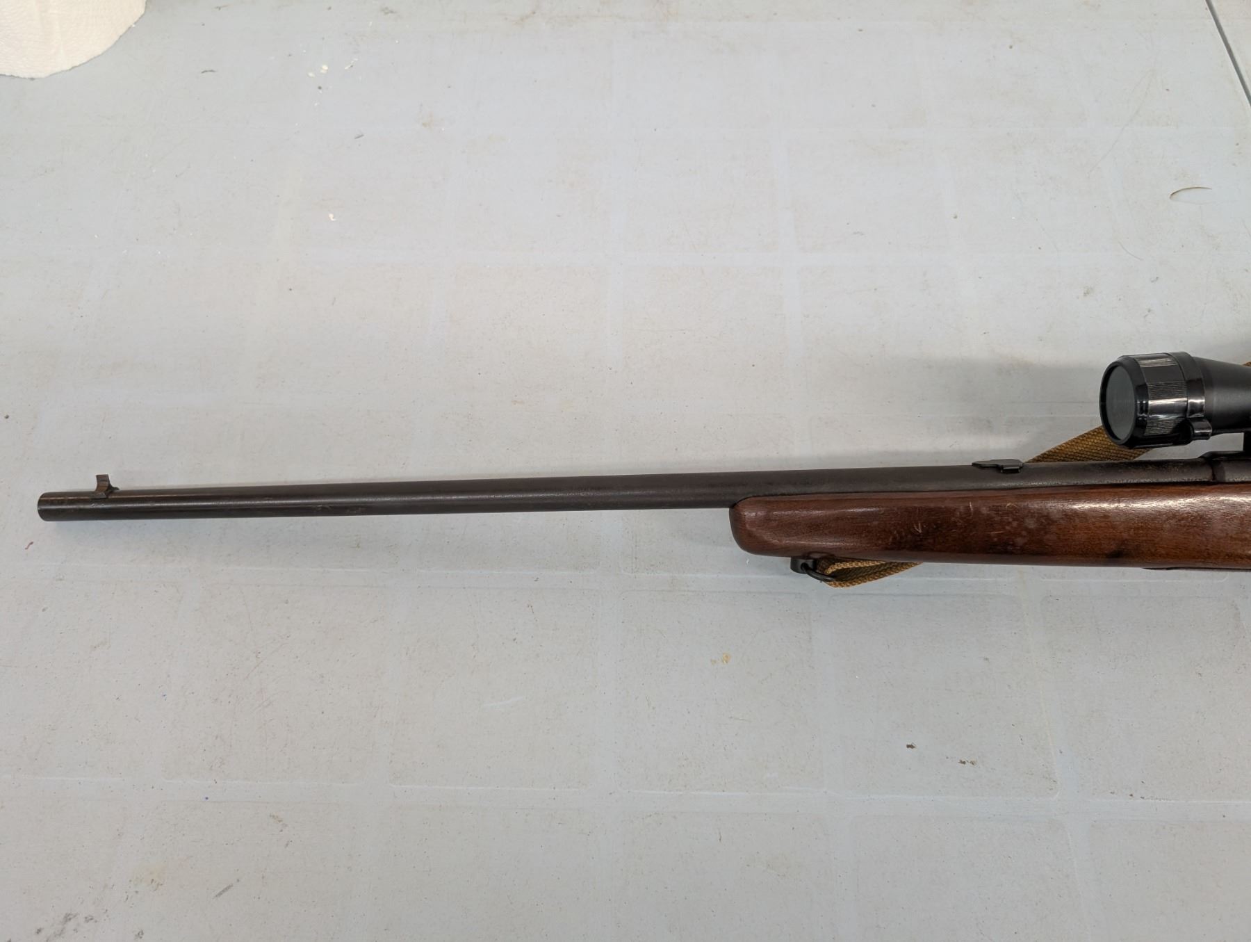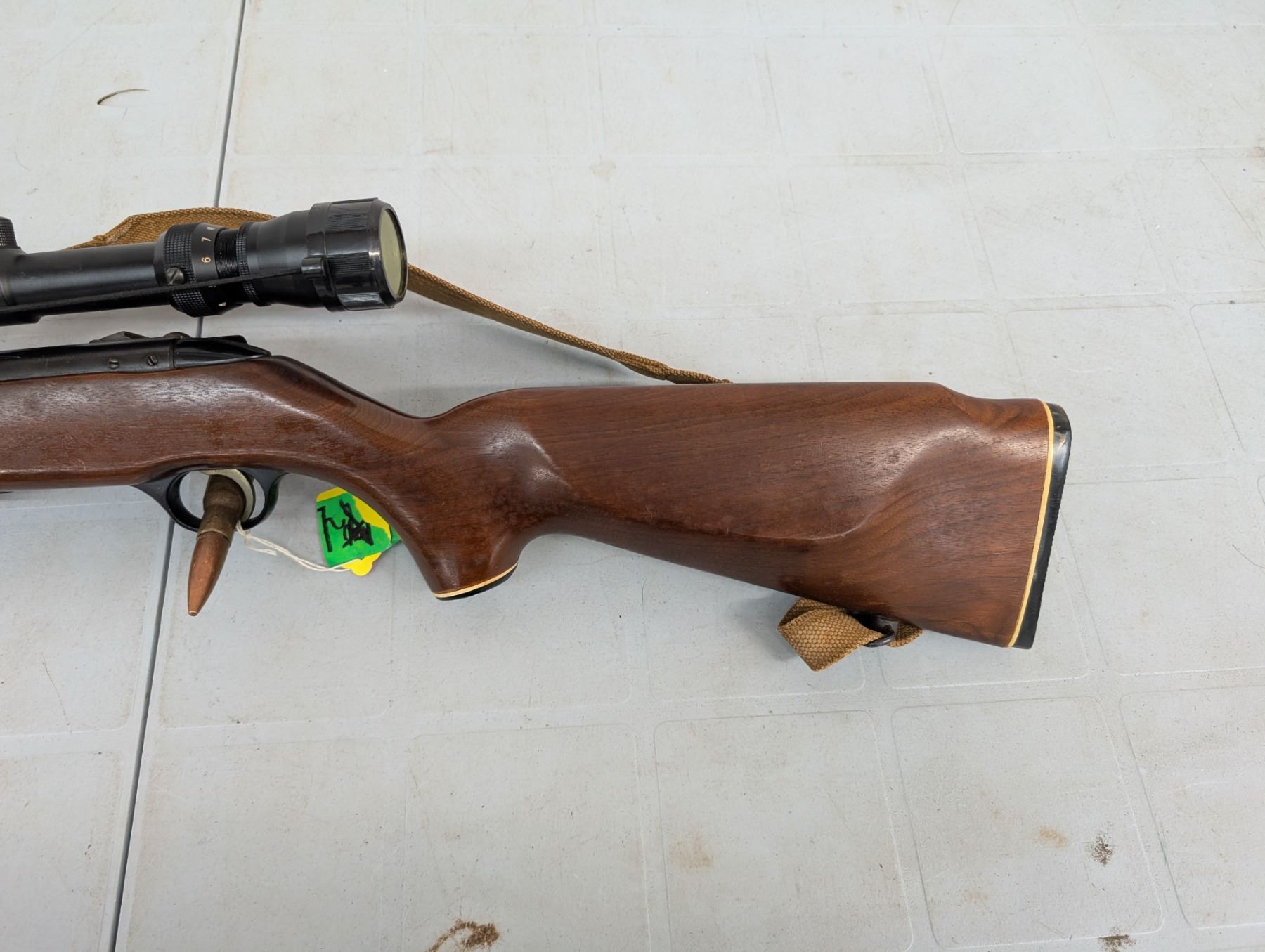 Bolt action. Bore is shiny with visible rifling. Stock is in excellent condition. Retains approx. 60% original blue. Redhead accent RF 3-9x32 Scope. Complete with Mag.